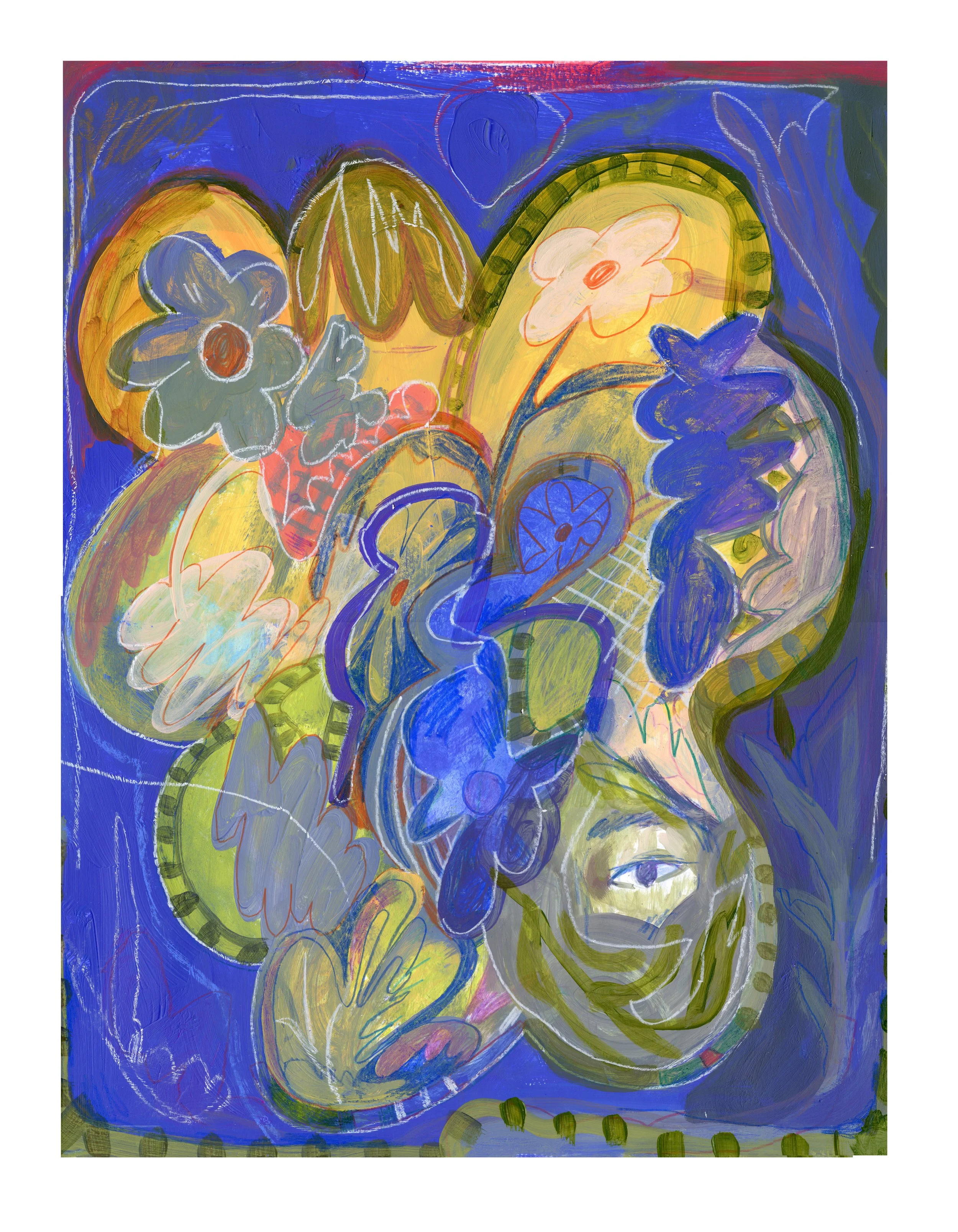 Watering, mixed media on canvas and rice paper, 48" x 72", 2024.